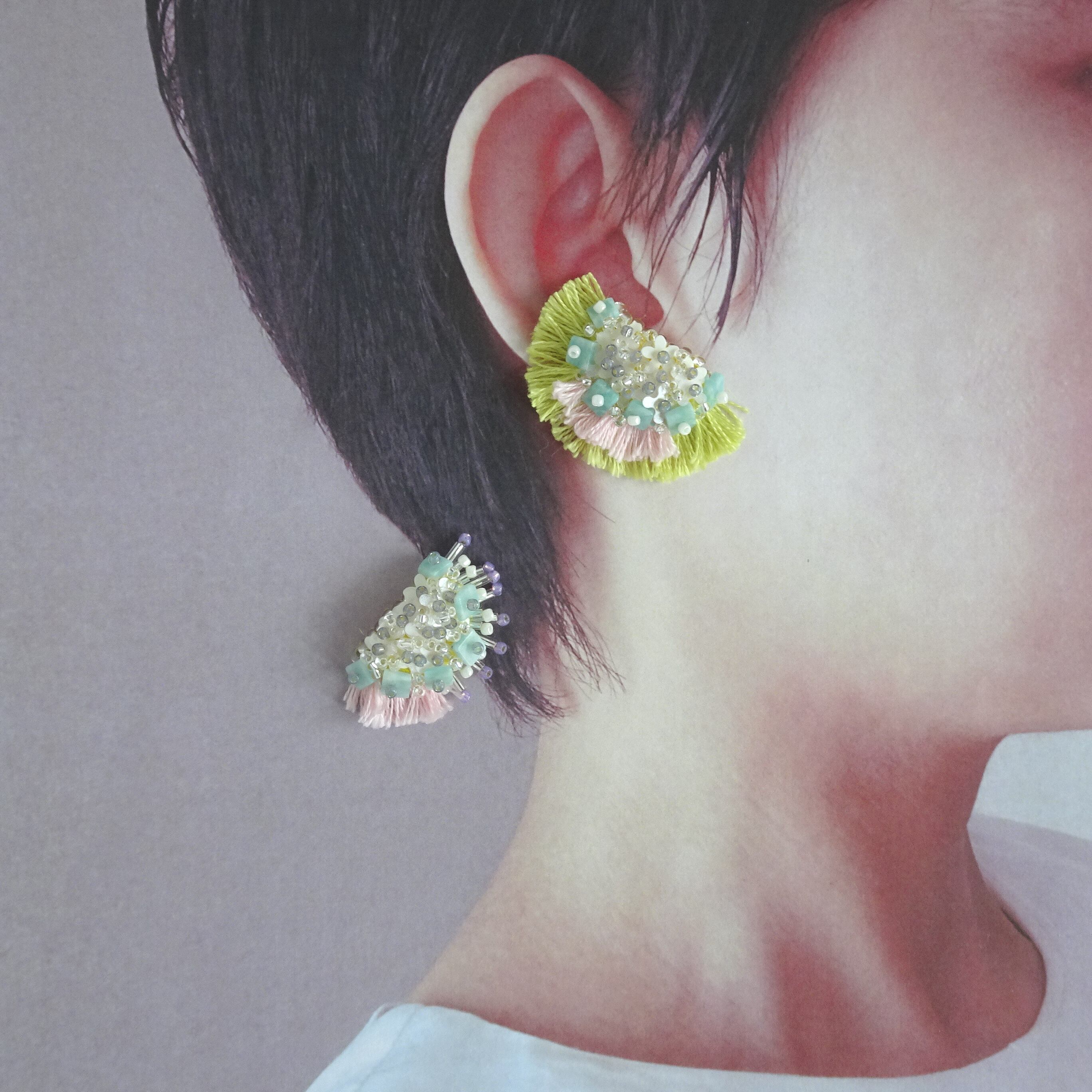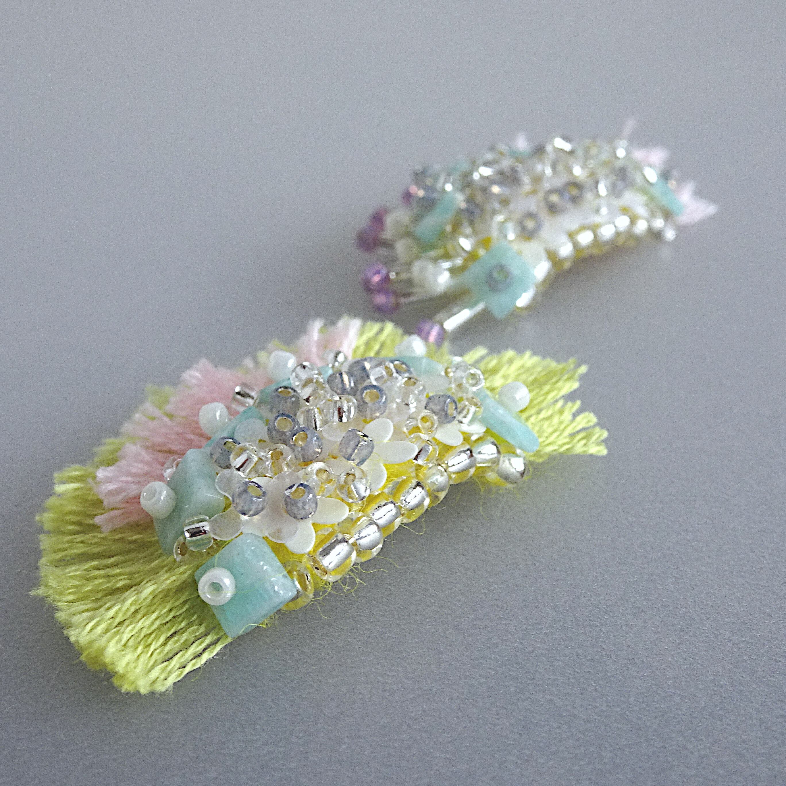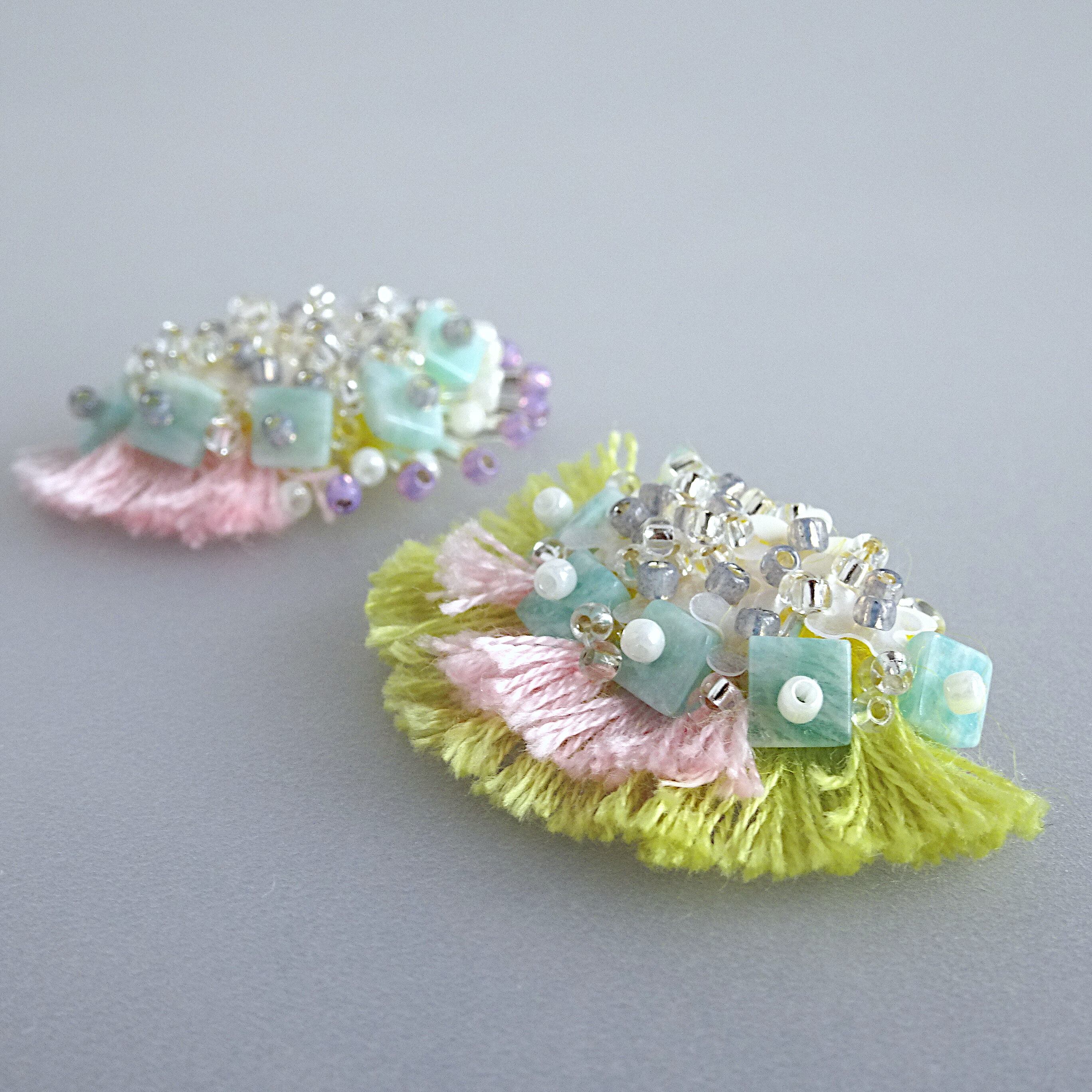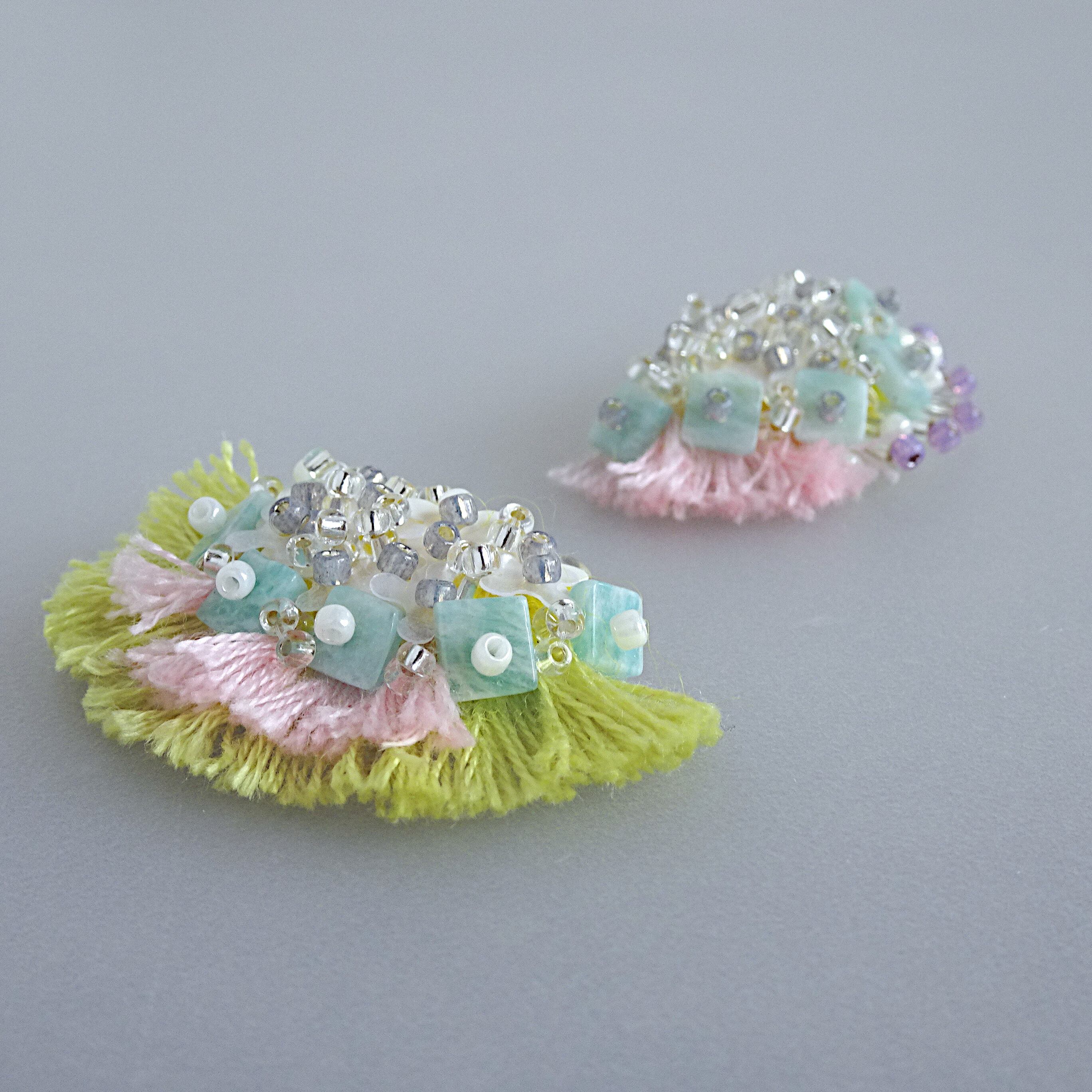 綿毛の様な刺繍糸のフリンジが軽やかな印象です。