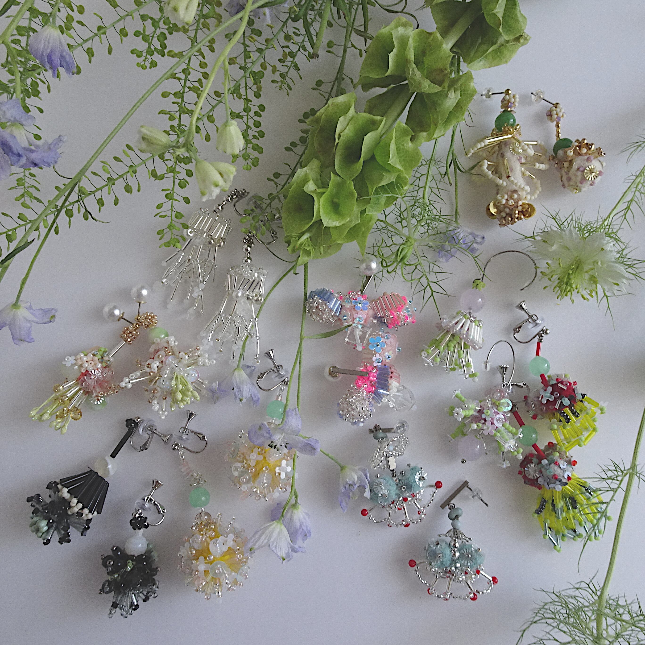 ビーズを立体的に刺繍して作り上げるBotanicalシリーズ。