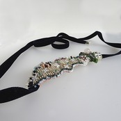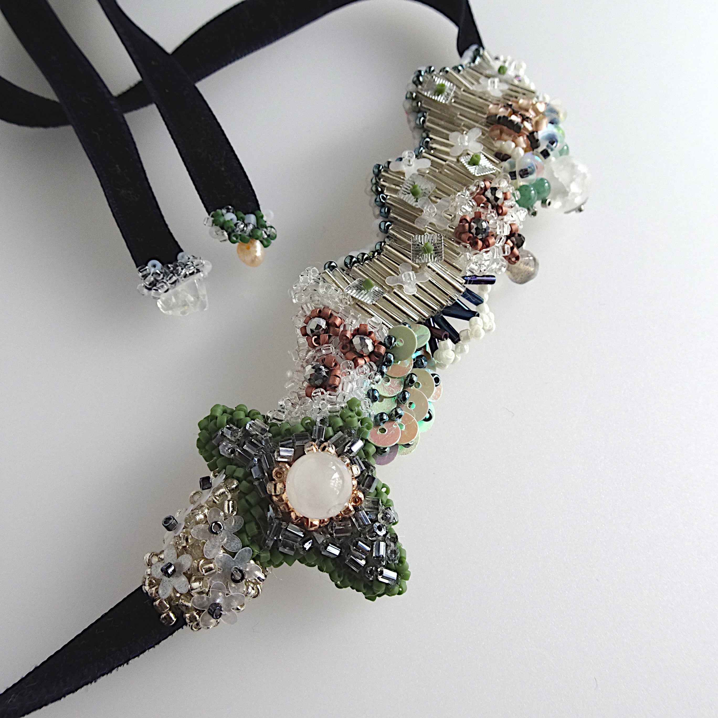ビーズを立体的に刺繍したベロアリボンネックレス。