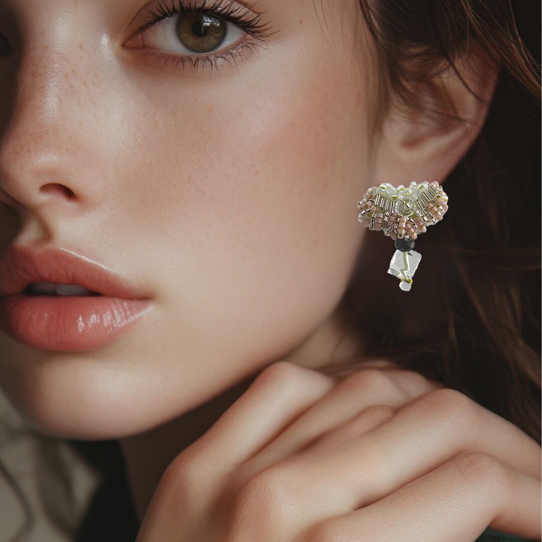 デザイン性の高い立体ビーズ刺繍ピアス。
