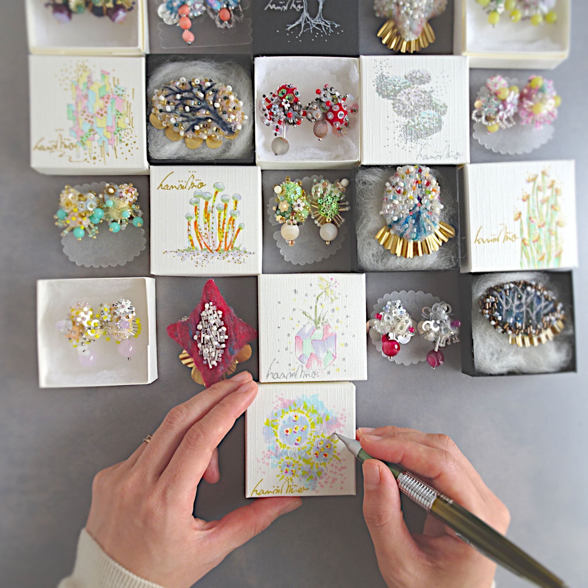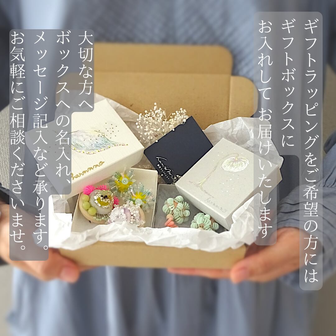 ご希望の方には、一点物手描き絵のオリジナルボックスにお入れしてお届けします。くわしい内容はHPトップより「wrapping」ページをご覧ください。