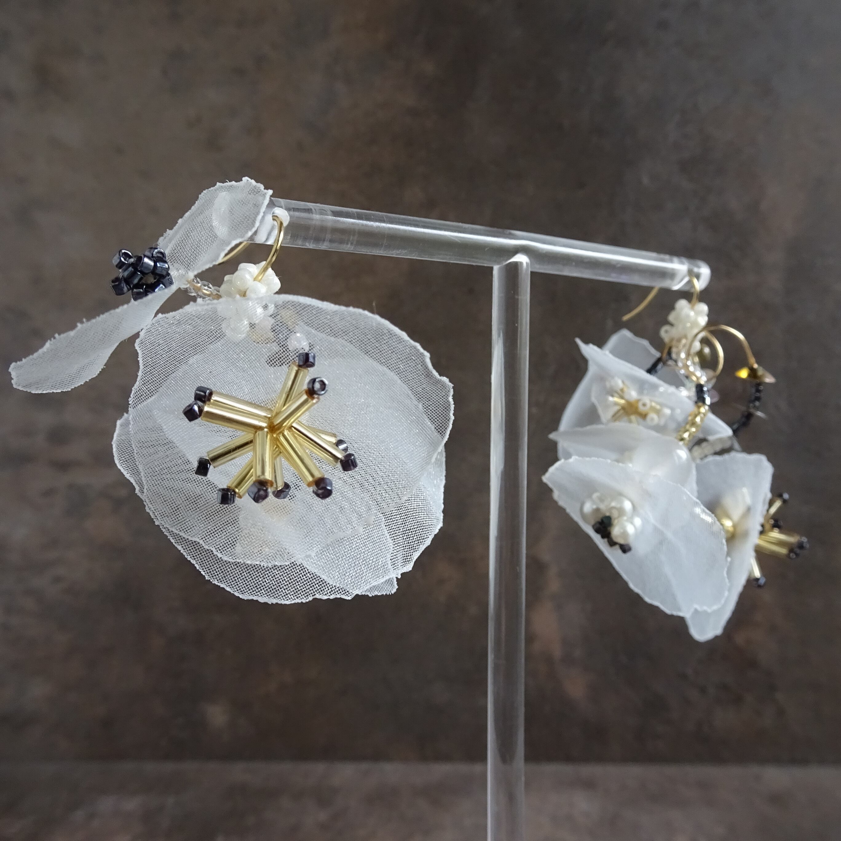 透ける花びらのような素材が春から初夏の爽やかなの空気をまとうイヤリングです。
